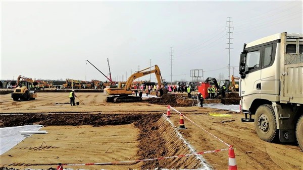 退“疫”之后,依旧忙碌在西咸新区建设的凯发E6225F挖掘机