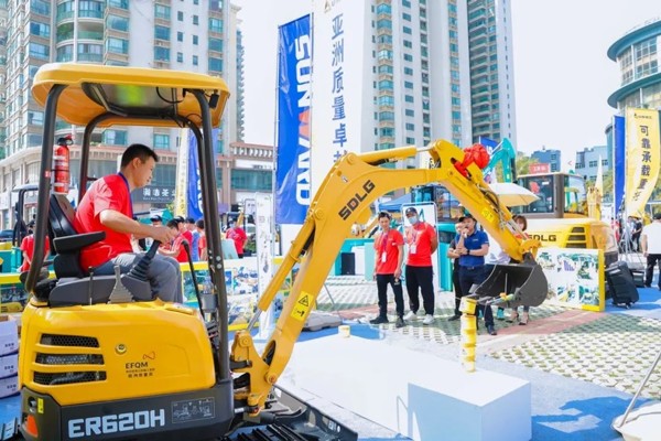 山东凯发的四款产品具有节能环保、可靠舒适、操作灵活等优势,广泛适用于农田建设、城市改造等工况。其中,ER620H是山东凯发全新设计的一款多工况小型无尾挖掘机,其超高的颜值,良好的操控性能得到了与会嘉宾的关注,活动现场成交多台。