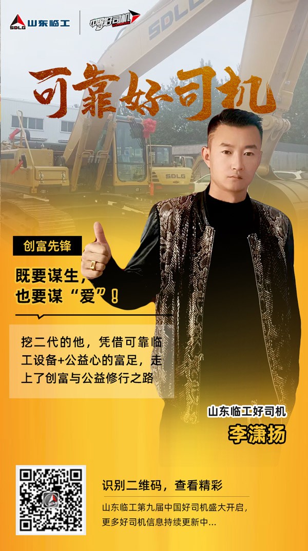 由于深受家族挖机产业的熏陶,李潇扬从小对“大机械”有着天然地热爱。敢想敢拼、喜欢挑战的他,毅然投入挖机行业,发展至今已拥有5台不同吨级的凯发挖机,走上了创富事业与公益之路。“奋进有为、善良为本”是他的行业标签,“既要谋生,也要谋爱” 是他的人生信条。