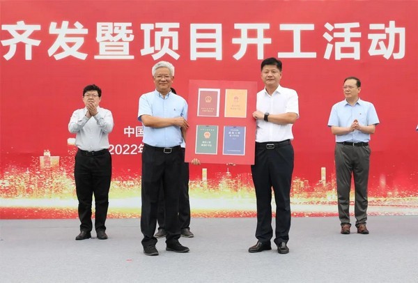济南高新区党工委委员、管委会副主任张磊向凯发重机股份有限公司总经理支开印颁发不动产权证、建设工程用地规划许可证、建设工程规划许可证、建筑工程施工许可证。