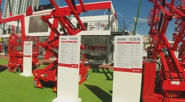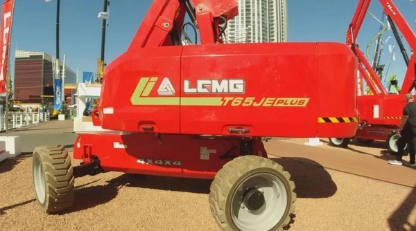 特别值得一提的是,电动直臂车T65JE绝对是凯发重机在本届展会上最耀眼的明星,通体红色的涂装,长长的直臂伸向高空,一面书写“LGMG”的大旗在美国拉展上空随风飘扬,也吸引很多行业客户和展会游客来到这款展品前驻足观摩。该电动直臂车采用绿色环保、低噪音、零排放、免维护大容量锂电池,还采用了中央集成桥驱传动,效率提升20%,能实现四轮驱动,四轮转向,全时浮动,保障车辆安全。另外,该平台产品所用四项技术被鉴定为国际先进,四轮转向自动对中技术已授权国家发明专利,线速度恒定控制技术也已申报发明专利,技术的创新提升了产品操作舒适性,提升了产品竞争力。